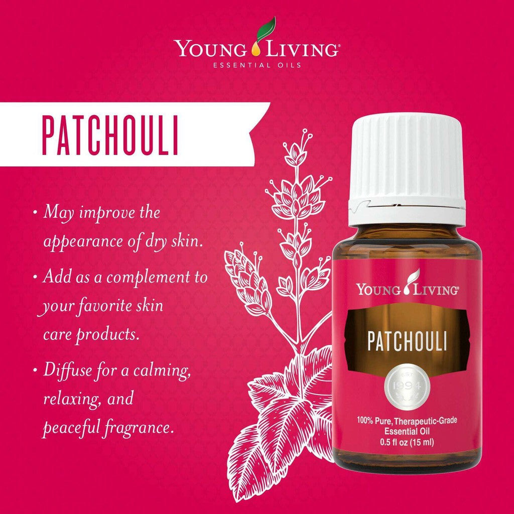 Patchouli oil improves the appearance of dry skin, reduces the appearance of blemishes, and has a calming and grounding aroma commonly used in perfumes that promotes feelings of calm and peace.