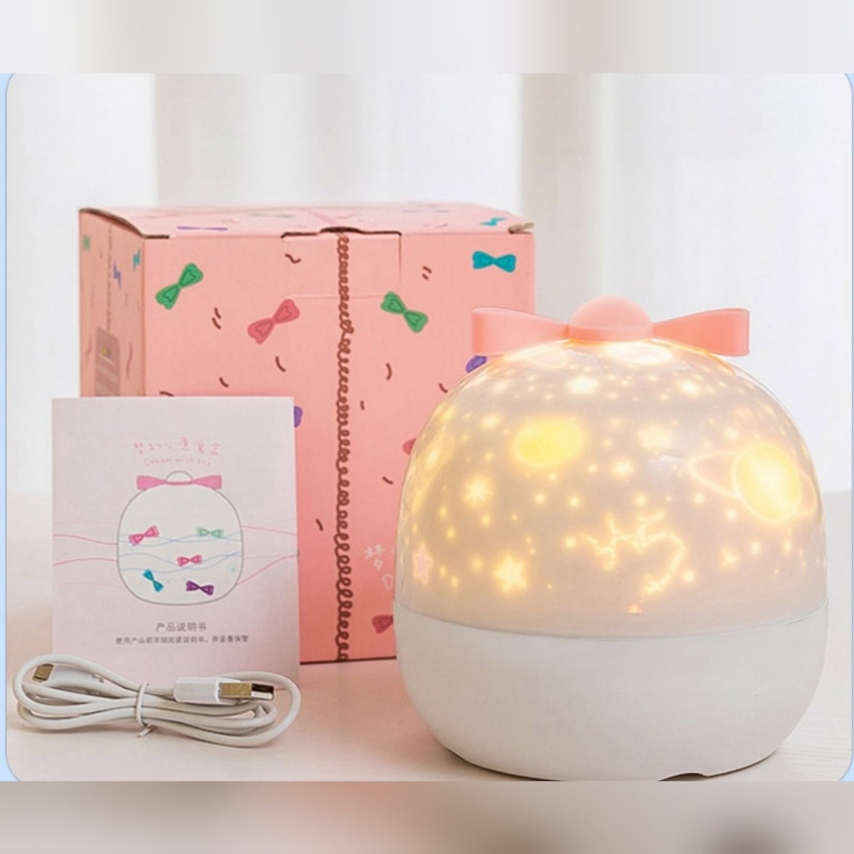- The light can be used as a projector when removing the shade and can be used as a night light and table lamp when it is with the shade. When as a night light, you can choose the lighting modes according to different environment.